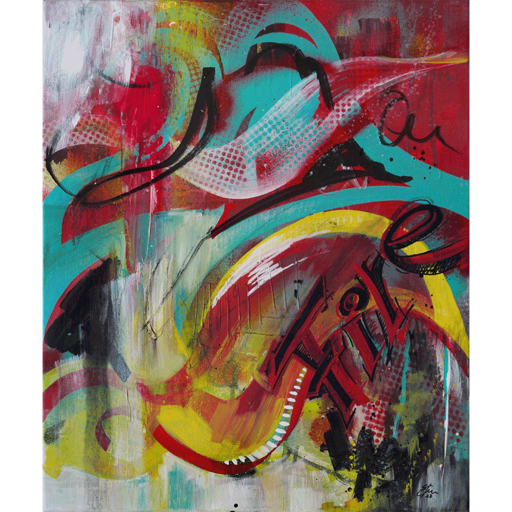 Technik: Acryl, Farbspray, Farbstift, Graffiti