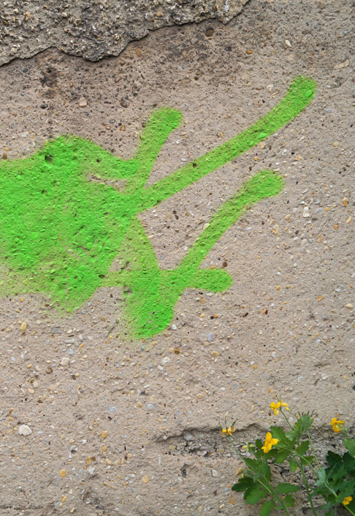 Der Untergrund bestimmt mit, was sich in das Bild fügt. Das Zusammenspiel von Formen, Farben und Situationen ergibt das Gesamtbild. So fügen sich teilweise Gesichter in das Geflecht aus Linien und Flächen ein. Mal abstrakter, mal konkreter.